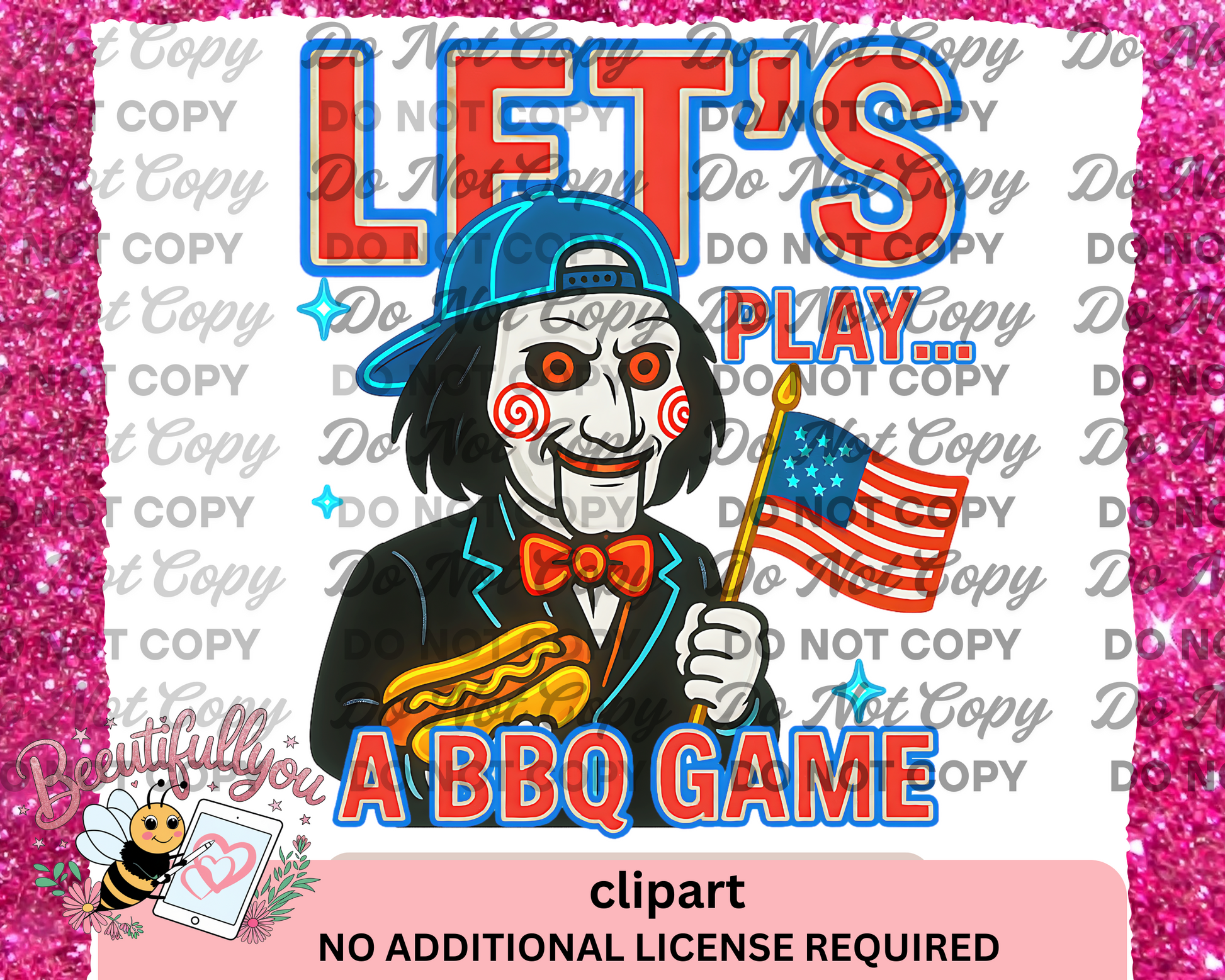 Let's Play a BBQ Game PNG – Funny Horror 4th of July Clipart