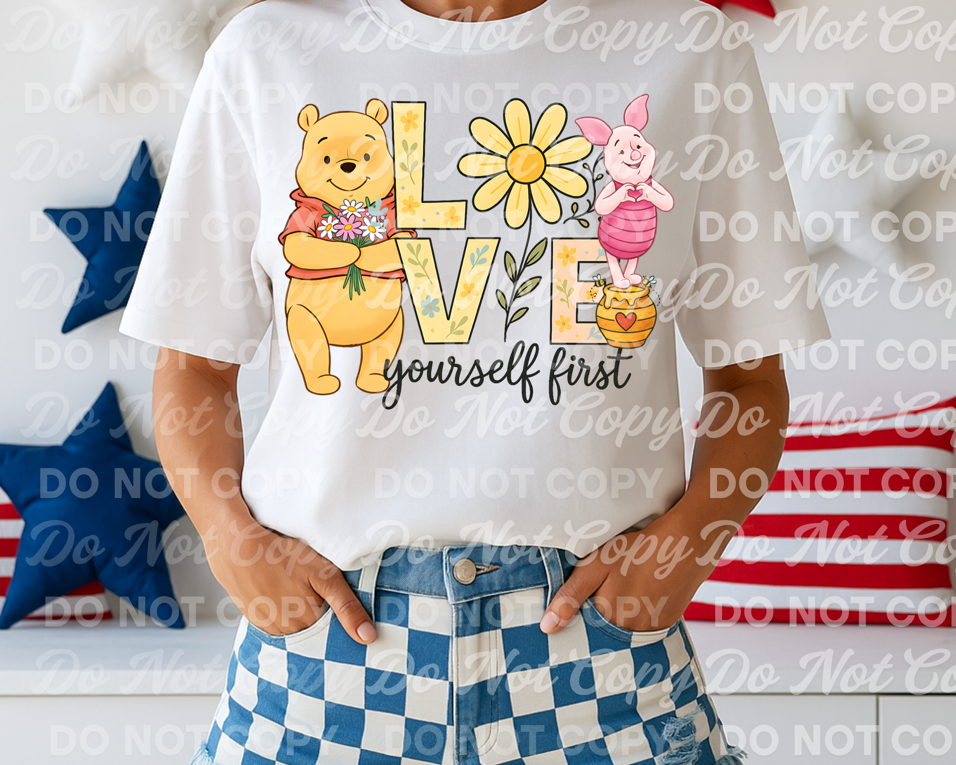Show yourself the same love you give others with this heartwarming “Love Yourself First” PNG design. Featuring a sweet hand-drawn style of Pooh holding daisies and Piglet making a heart, this uplifting digital design includes soft floral elements and gentle colors—perfect for mental health awareness tees, self-care gifts, or motivational prints.
