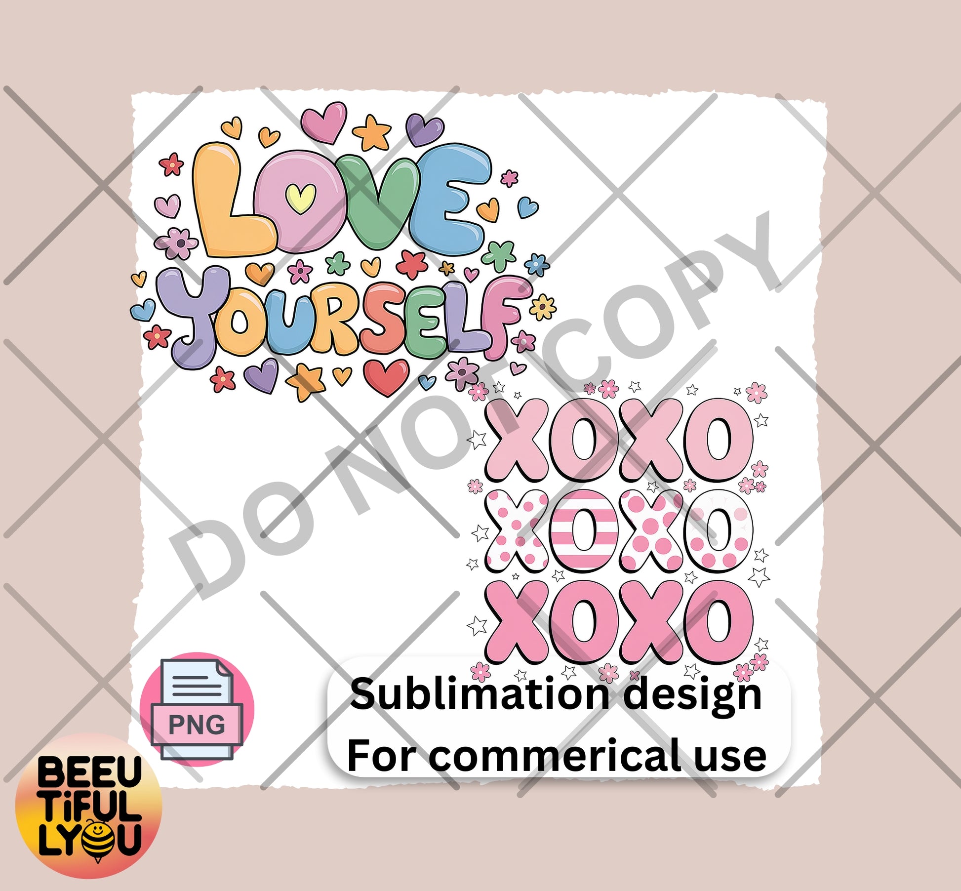 Love Yourself & XOXO Sublimation Design - Cute Pastel Hearts and Flowers PNG for T-Shirts, Tumblers, and Crafts