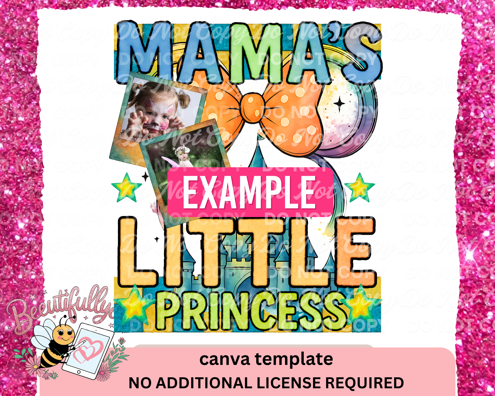 Mama’s Little Princess Editable Canva Template | Minnie Mouse Photo Frame Sublimation Design