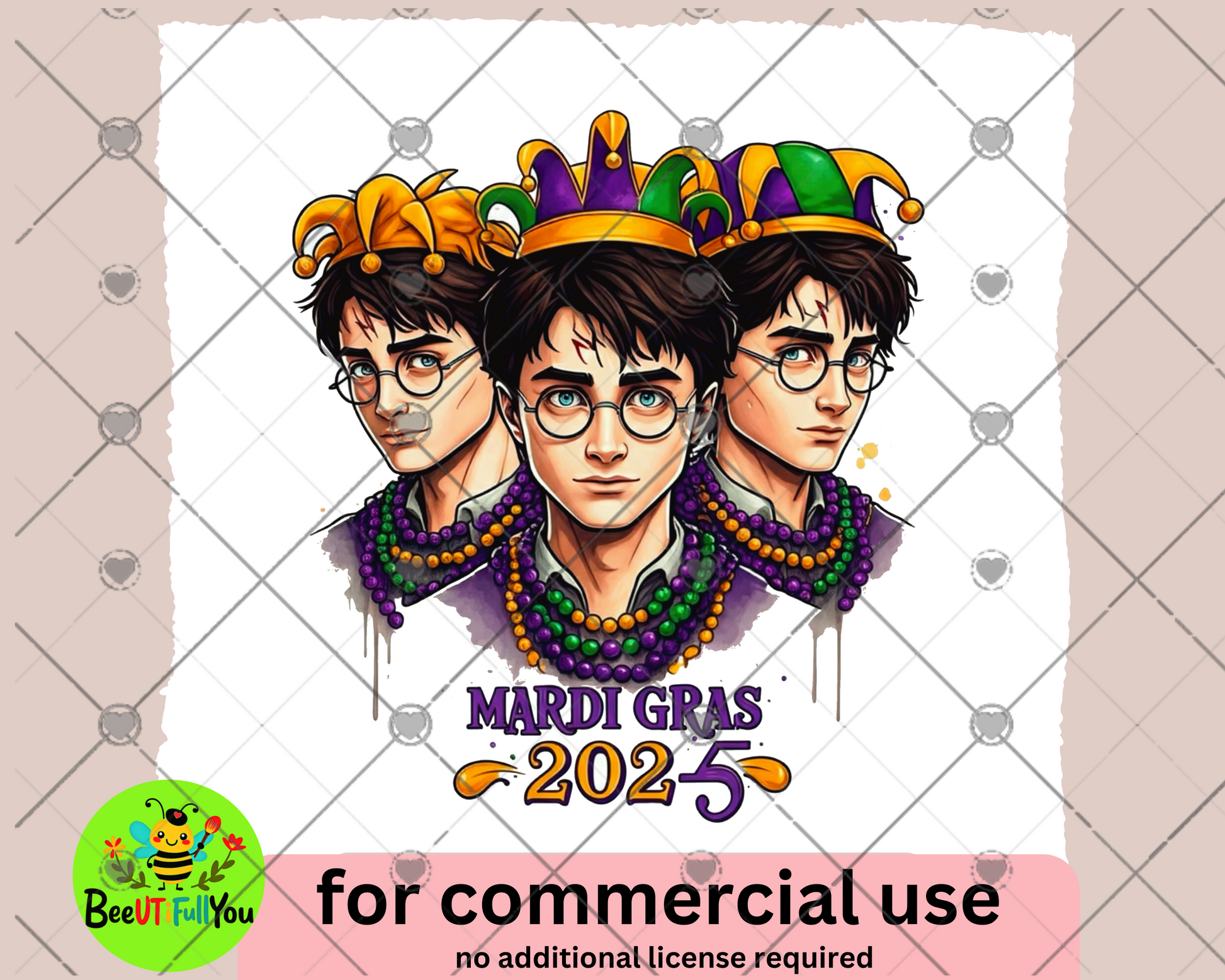 Celebrate Mardi Gras with a magical twist! This fun high-resolution PNG design features Harry Potter in a festive Mardi Gras theme, perfect for adding a touch of wizarding world charm to your Carnival creations. Ideal for t-shirts, mugs, decorations, and more!