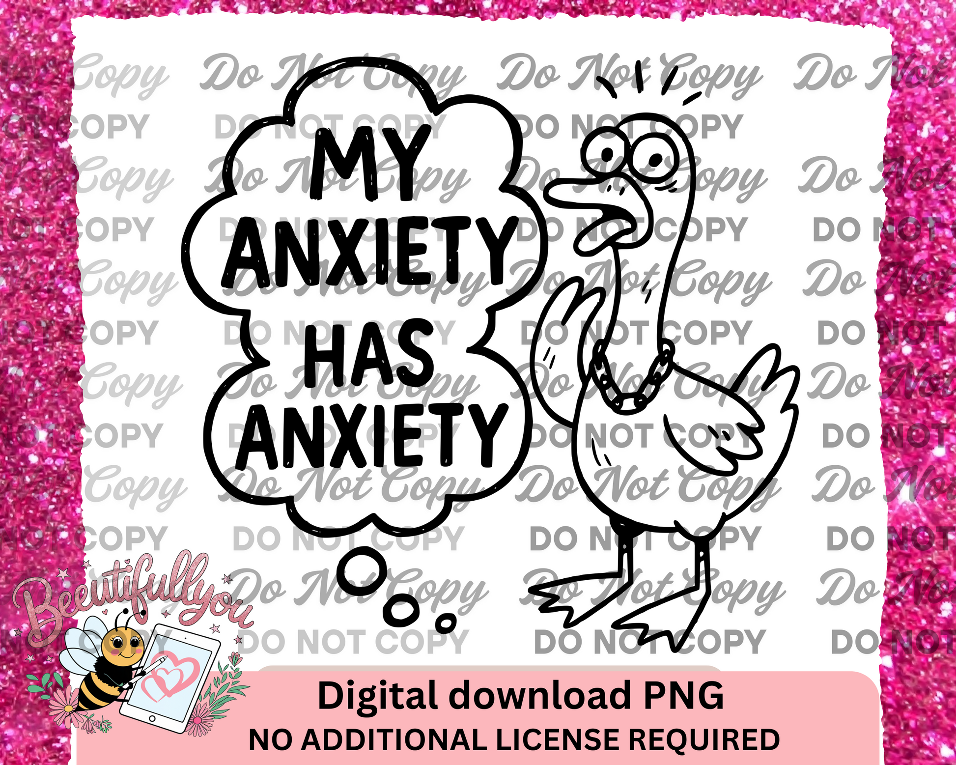 My Anxiety Has Anxiety PNG | Funny Mental Health Goose Clipart | Sarcastic Digital Shirt Design