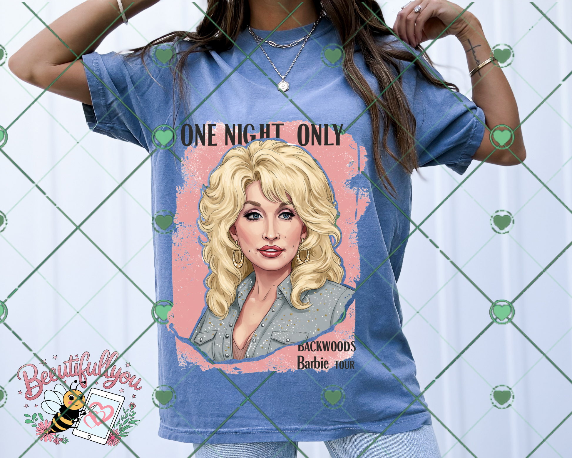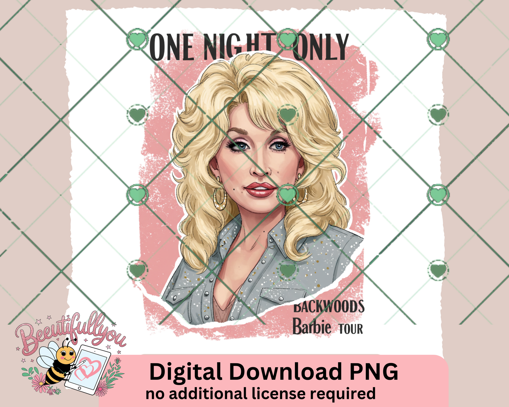 Step into the iconic country charm of Dolly Parton with this vintage-inspired Backwoods Barbie Tour design! Perfect for fans of country music, retro vibes, and classic Southern glam, this digital download is ideal for t-shirts, hoodies, tote bags, and more.