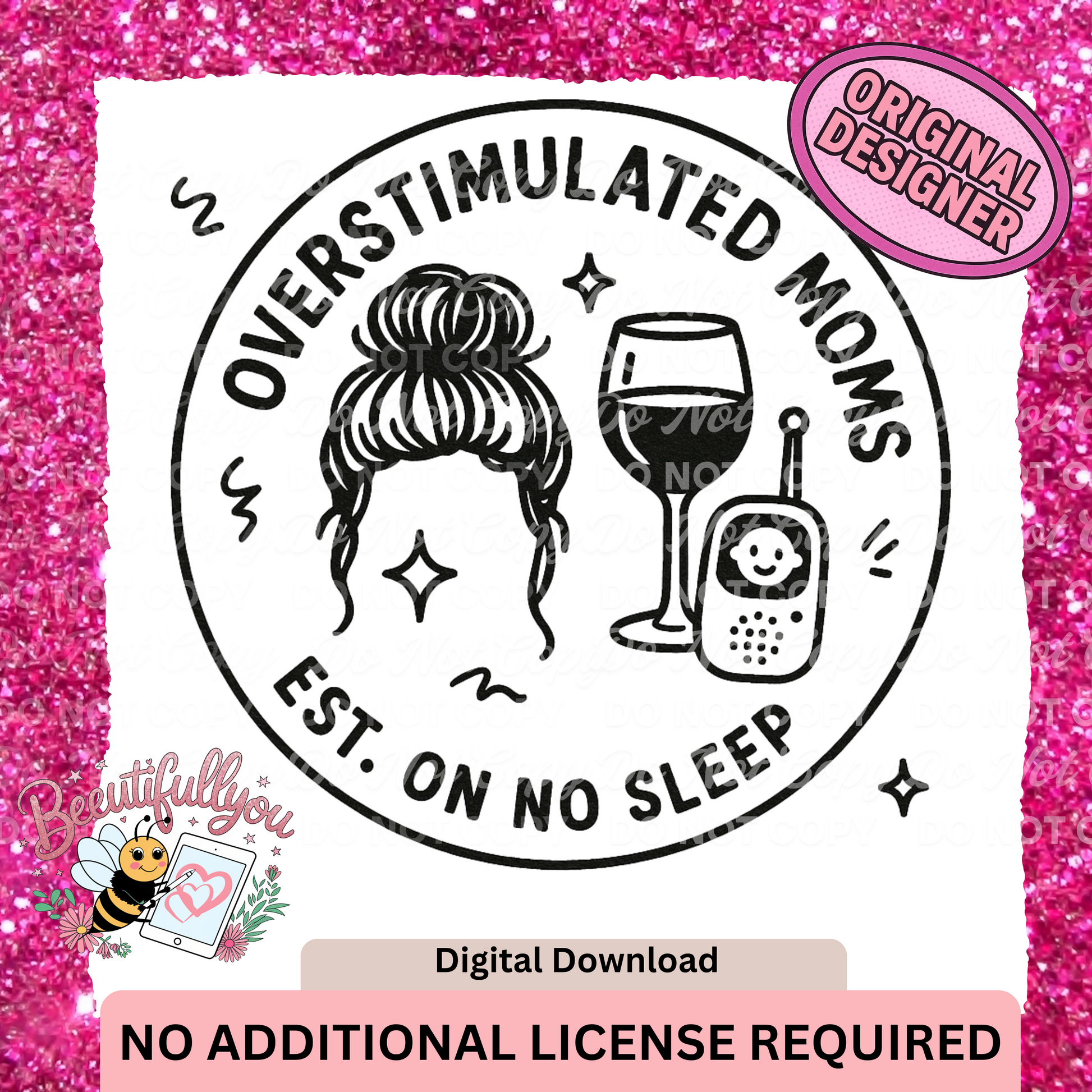 Overstimulated Moms β Est. on No Sleep | Funny Mom Life PNG Design | No Additional License Required