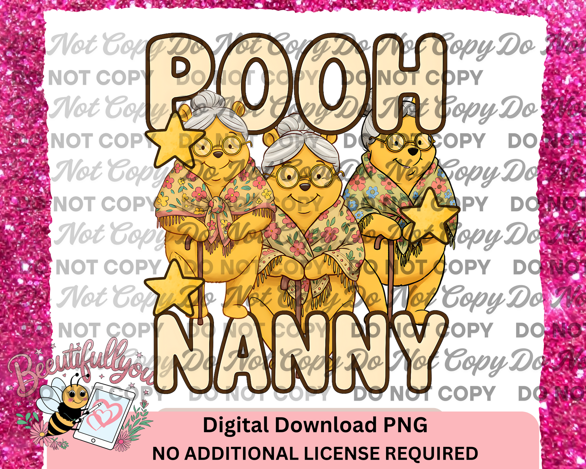 Pooh Nanny PNG – Funny Grandma Digital Download with Cute Pooh Characters