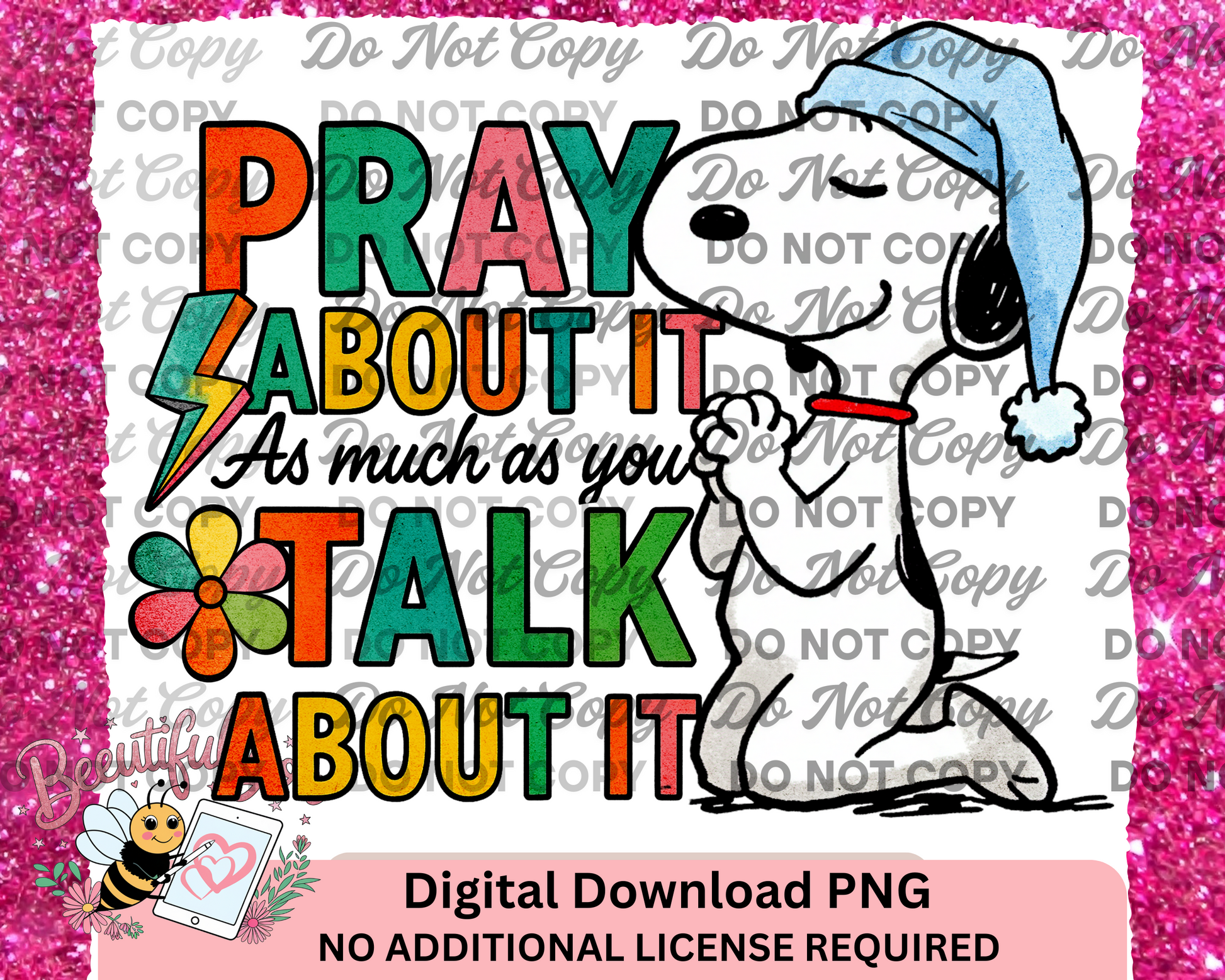 Pray About It As Much As You Talk About It PNG – Cute Dog Faith Digital Download