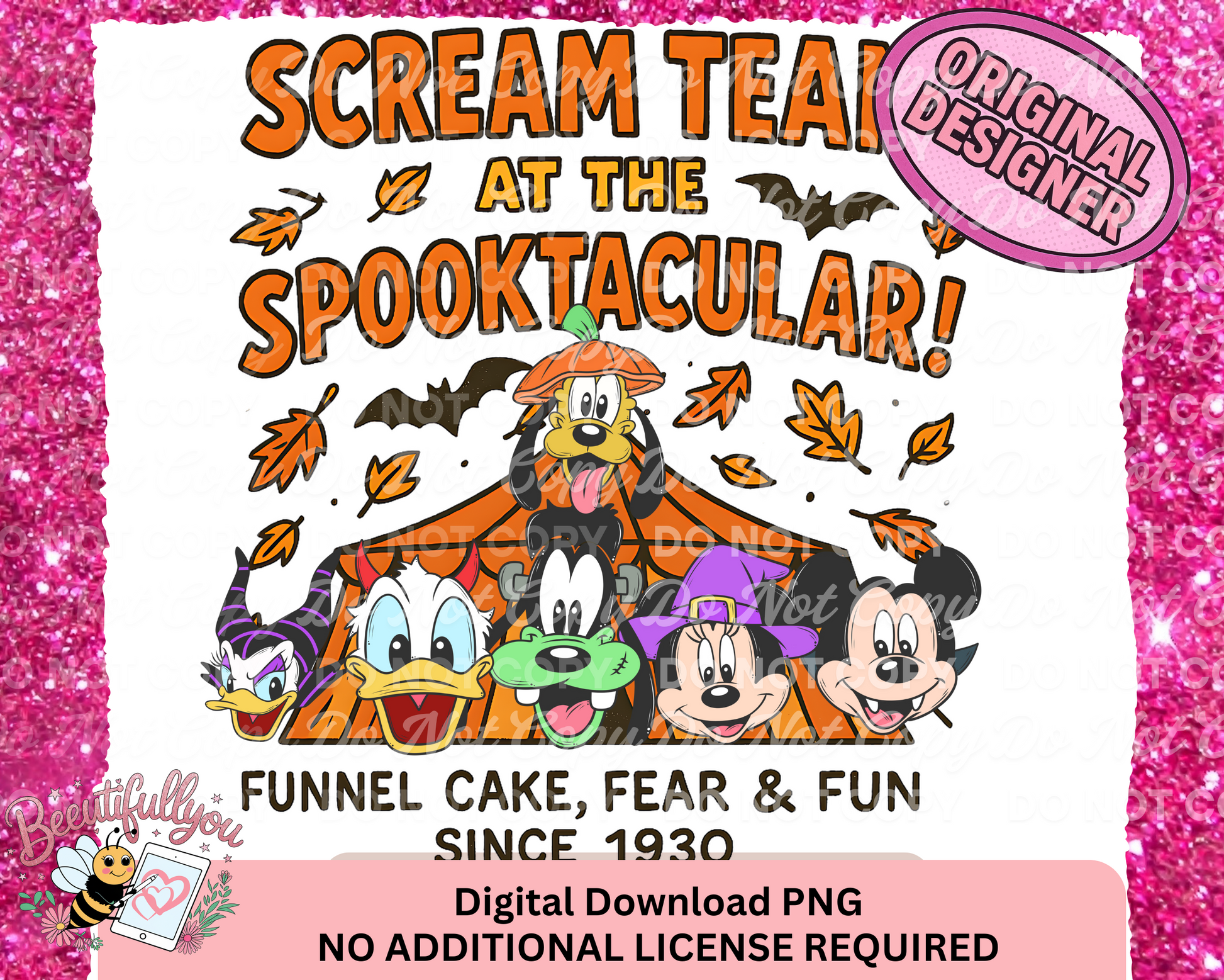 Gather the gang—it’s funnel cake, fear, and fun since 1930! This Halloween-ready digital design features all your favorite spooky squad members dressed up and ready to scream at the fair.