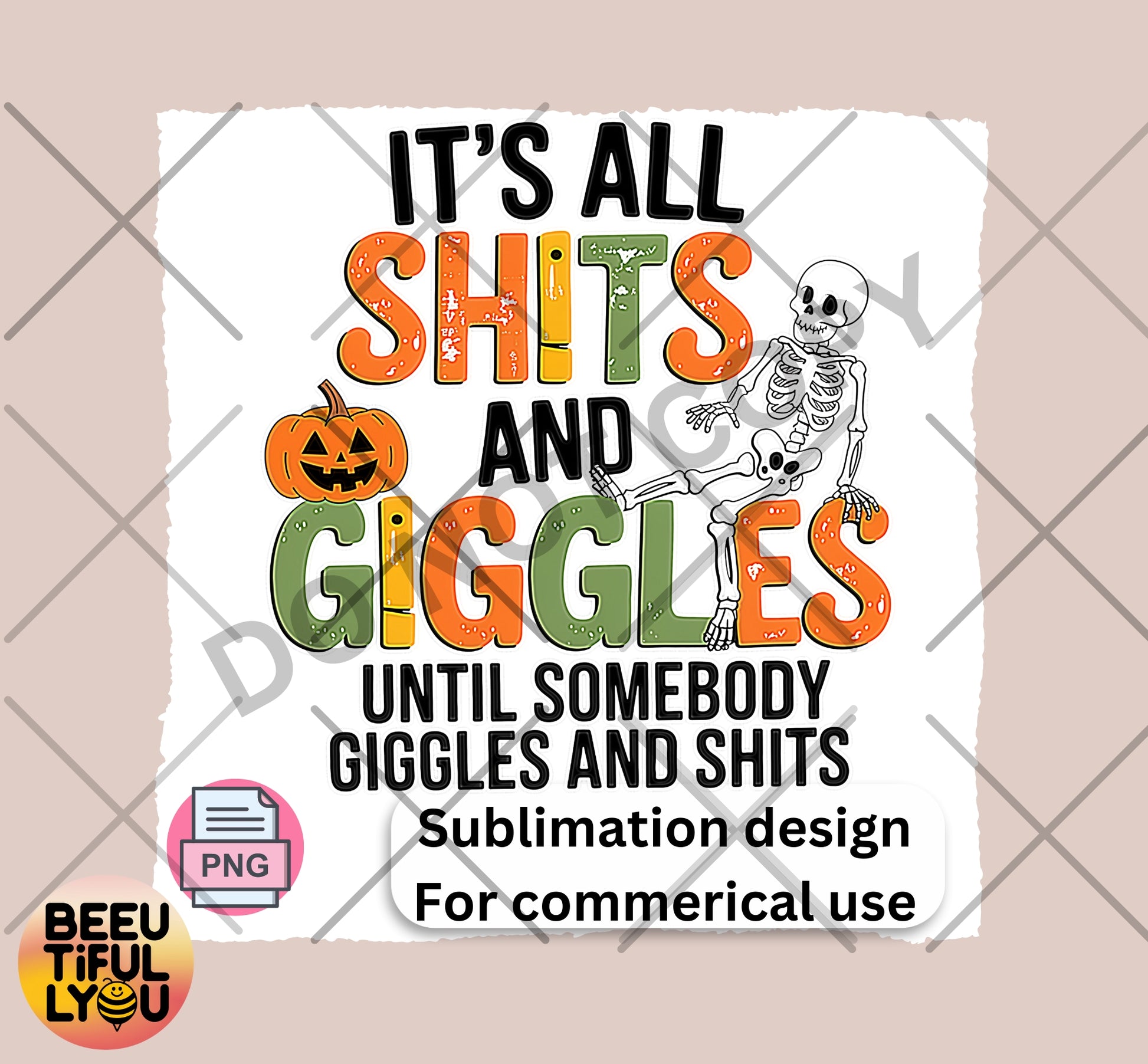 Sh*ts and Giggles Funny Halloween Sublimation Design - Skeleton and Pumpkin Humor PNG for T-Shirts and Crafts