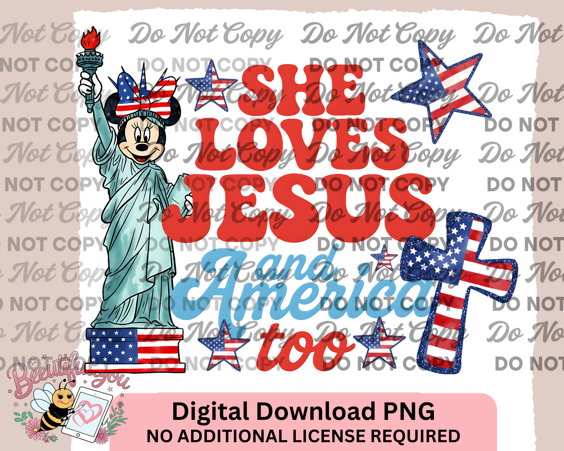 She Loves Jesus and America Too - Patriotic Minnie PNG