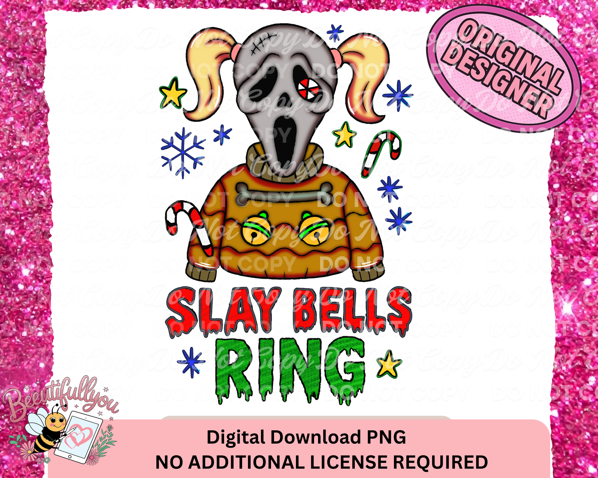 Slay Bells Ring PNG | Funny Horror Christmas Digital Download | Ugly Sweater Killer Holiday Design