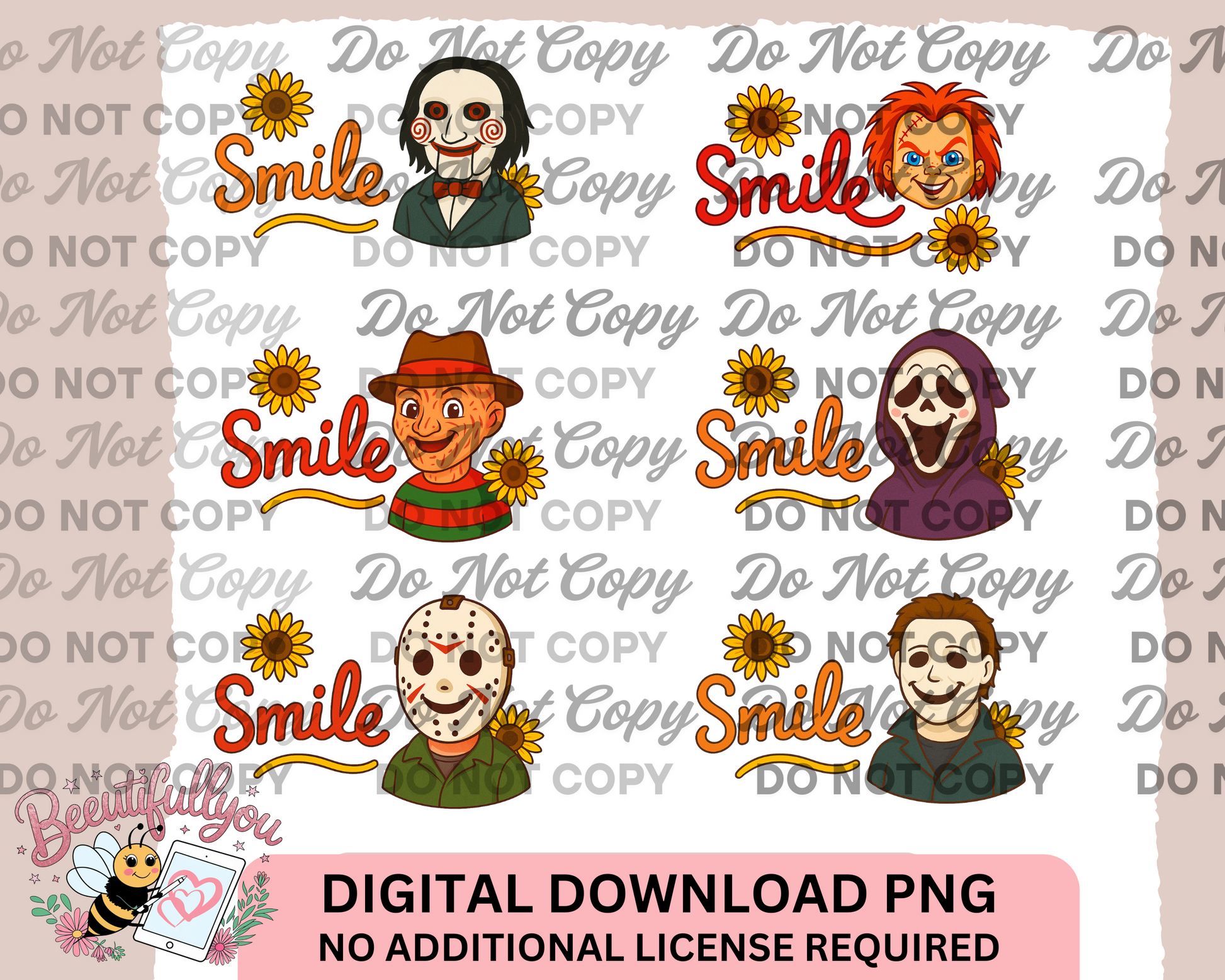 Smile Horror Characters Bundle – 6 PNG Digital Download Set