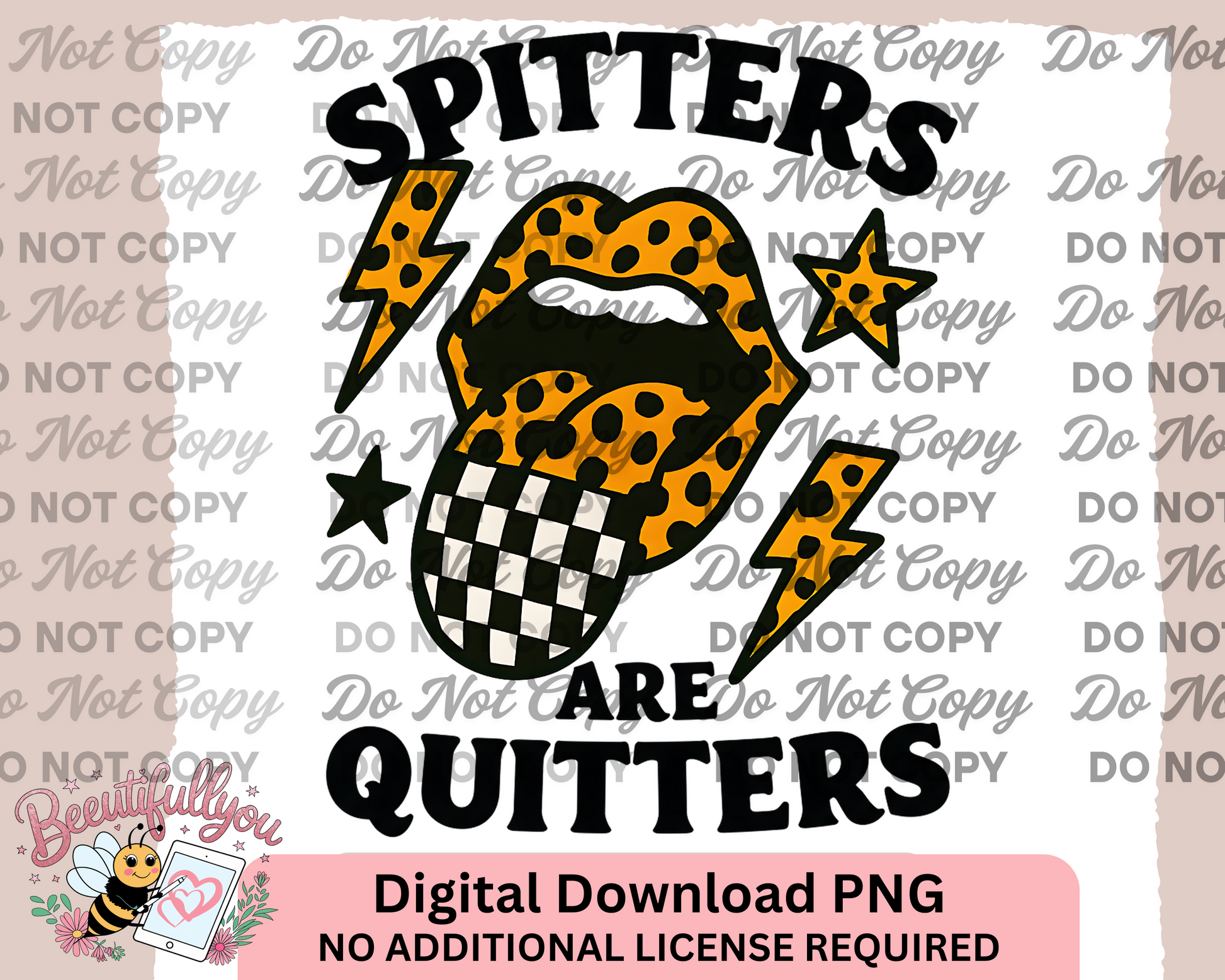 Spitters Are Quitters – Funny Leopard Lips Digital PNG Design with Lightning & Stars | Sublimation File | Commercial Use