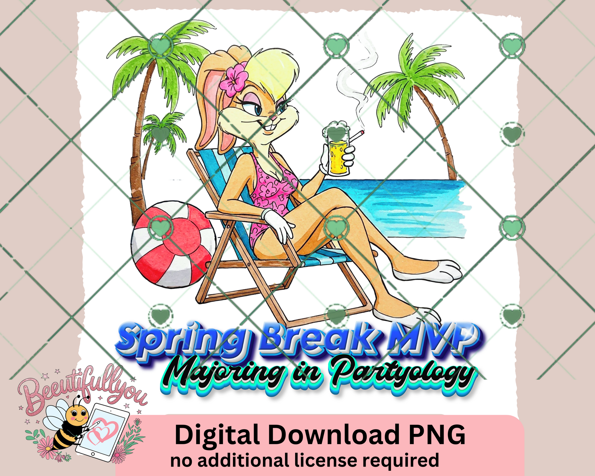 Relax, unwind, and soak up the spring break vibes with this fun and flirty digital design! Featuring a stylish beach scene with a cool, confident vacationer, this artwork is perfect for summer-themed projects, apparel, tumblers, and more. Whether you're hitting the beach or just dreaming about it, this design captures the carefree energy of party season.