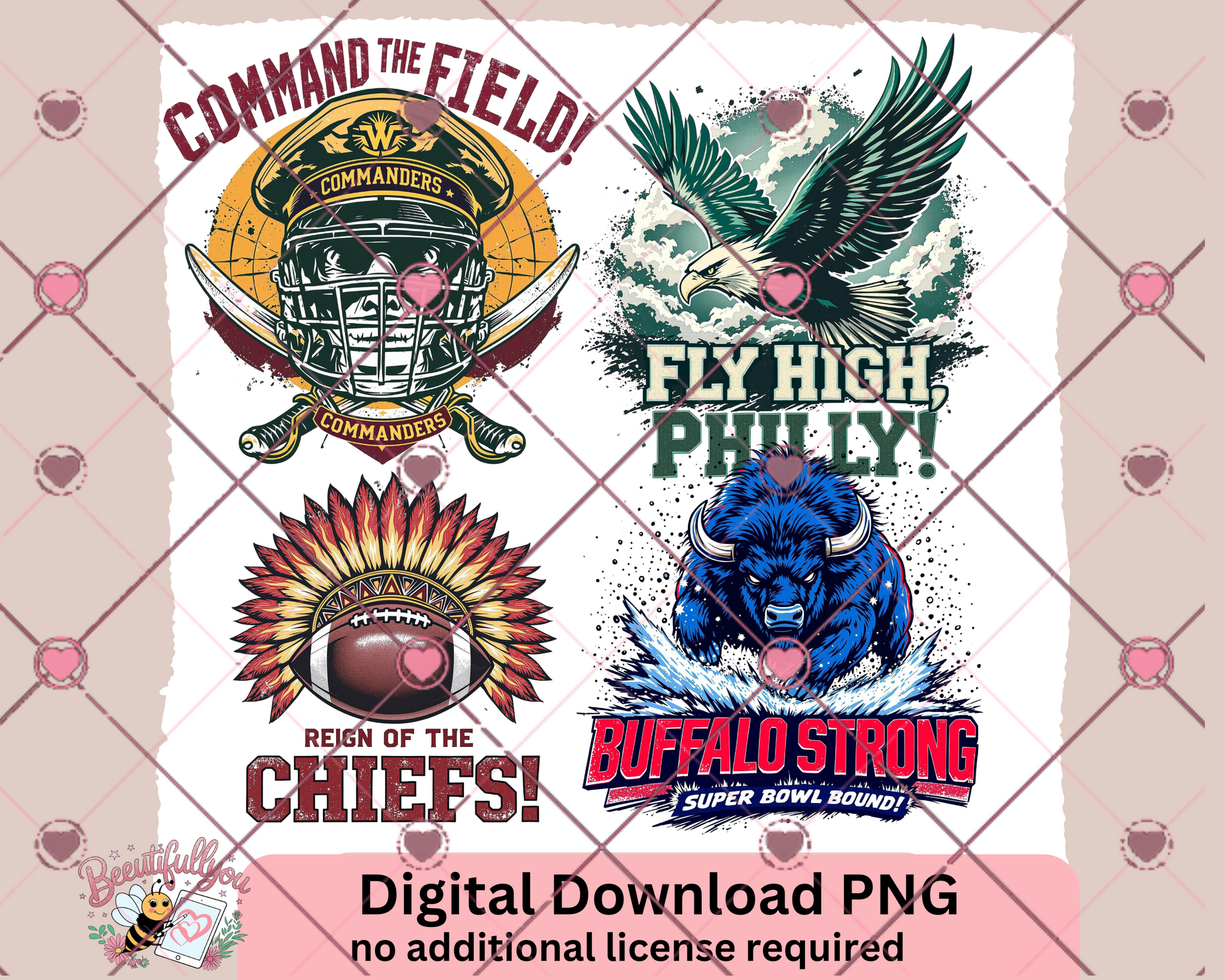 Super Bowl Contenders Bundle | Commanders, Eagles, Chiefs, Buffalo Designs | Digital Download PNG for Fans & Football Lovers