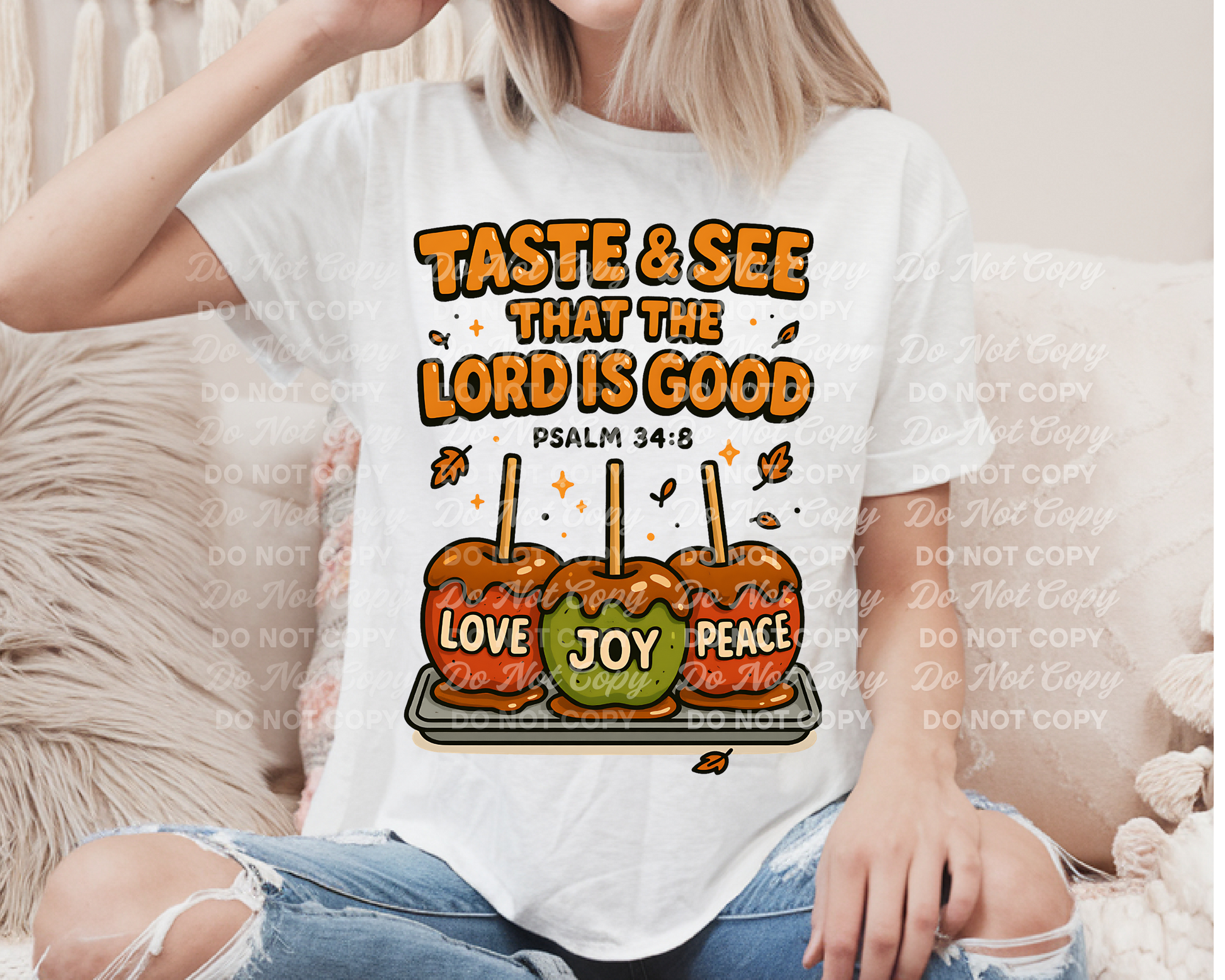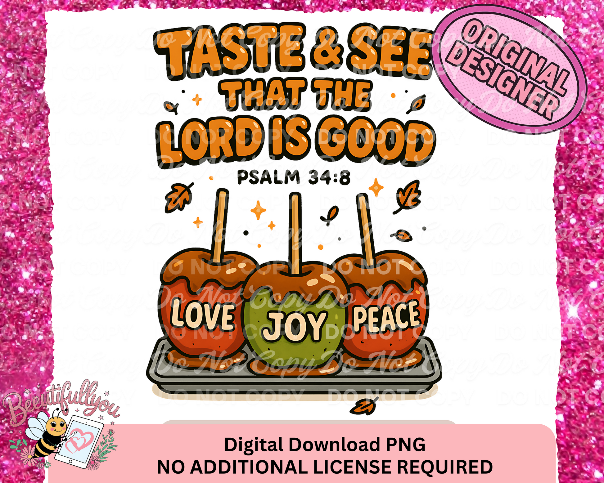 Taste & See That the Lord Is Good PNG | Psalm 34:8 Bible Verse Fall Caramel Apple Digital Download
