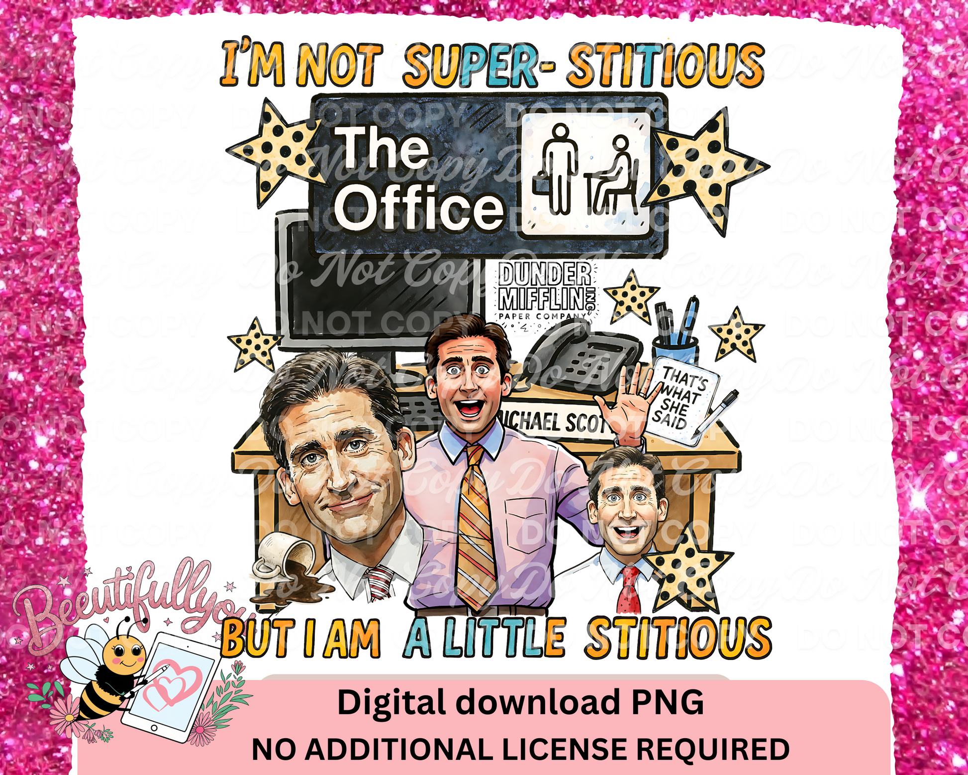 Bring the laughs with this iconic Michael Scott quote from The Office — “I'm not superstitious, but I am a little stitious.” This high-quality digital PNG download is perfect for sublimation crafts, t-shirts, mugs, and more for fans of the show.