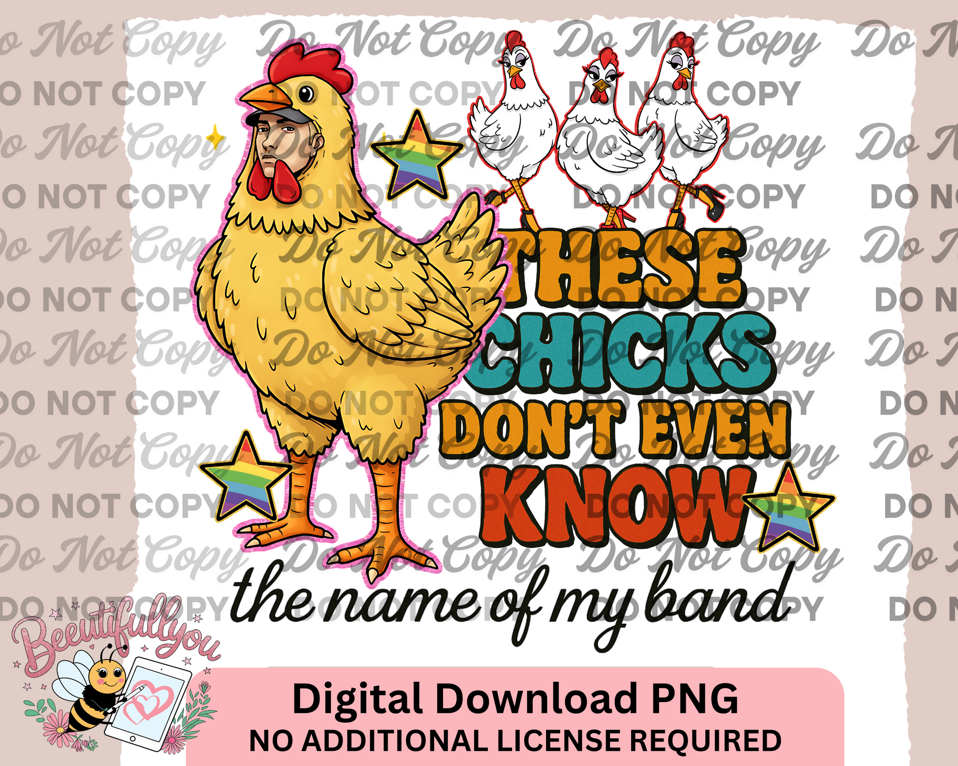 THESE CHICKS DON’T EVEN KNOW – Funny Chicken Band Digital Design – Retro Bold Letters PNG