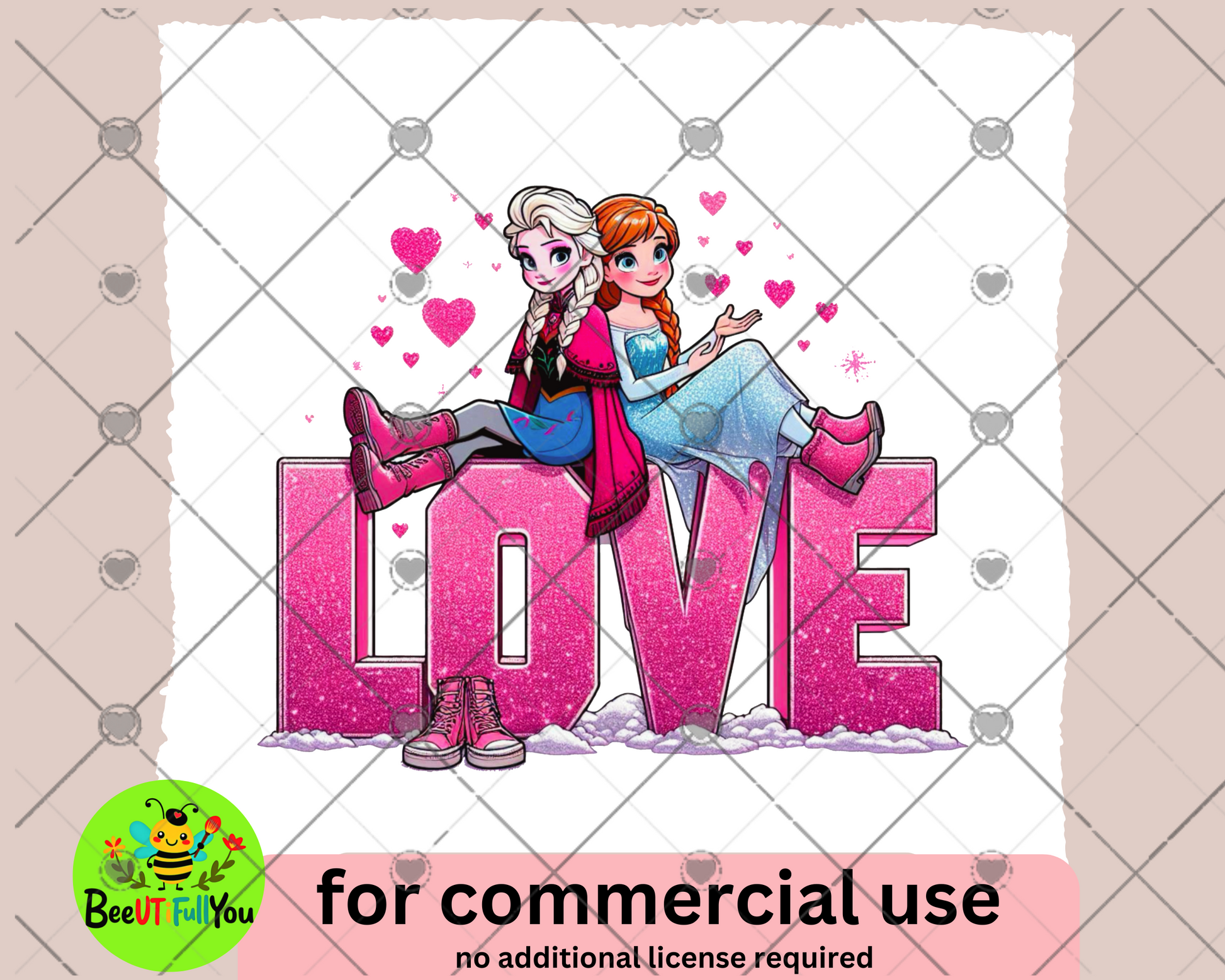 This heartwarming high-resolution PNG design features Anna and Elsa from Disney's Frozen sharing a sisterly bond, perfect for adding a touch of magic and love to your creative projects. Ideal for Valentine's Day, family-themed designs, or any project that needs a dose of Frozen fun.
