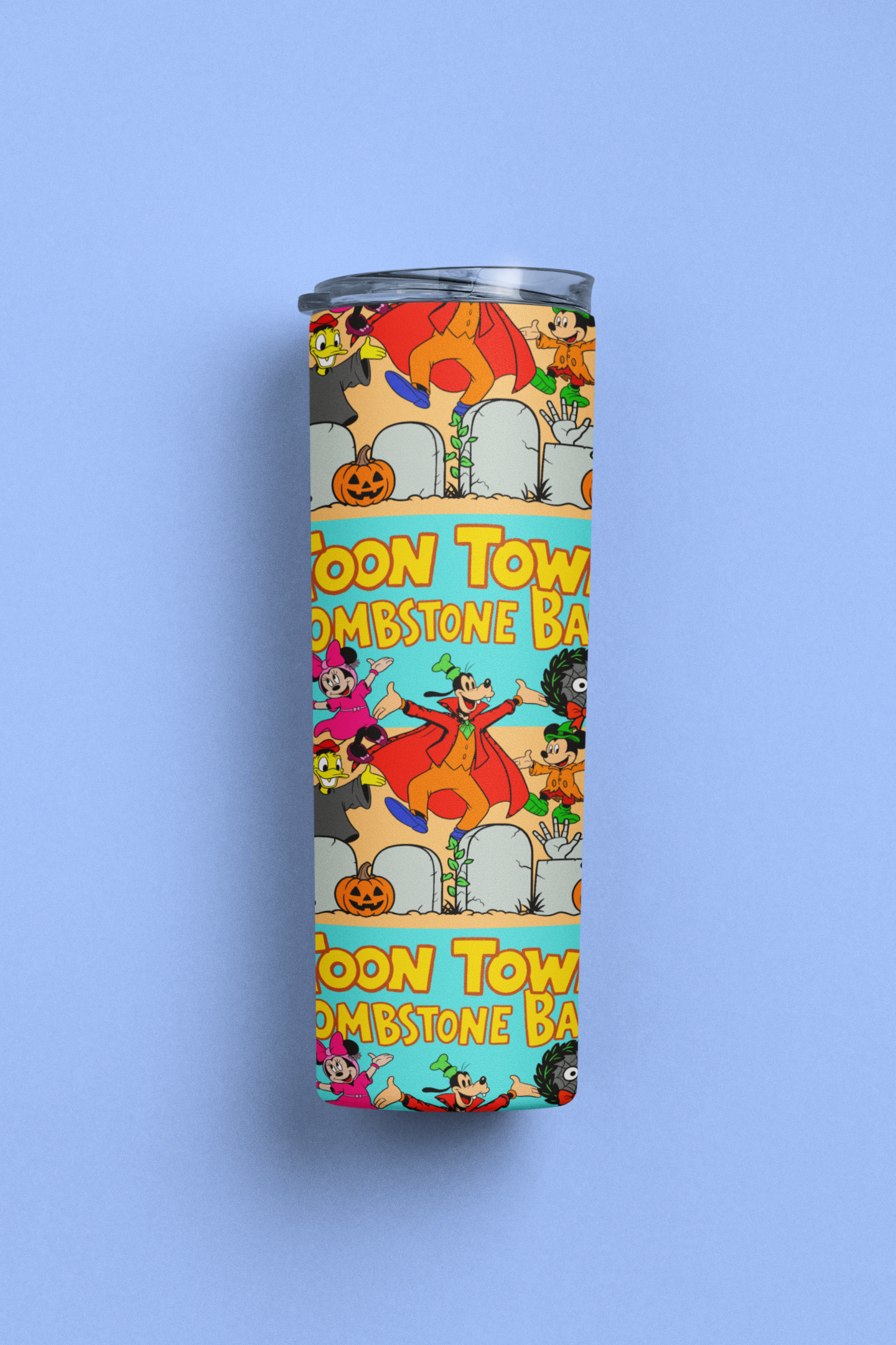 Toon Town Tombstone Bash Bundle โ PNG Design, Seamless Tumbler Wrap, Font + Clipart Pack (Digital Download)