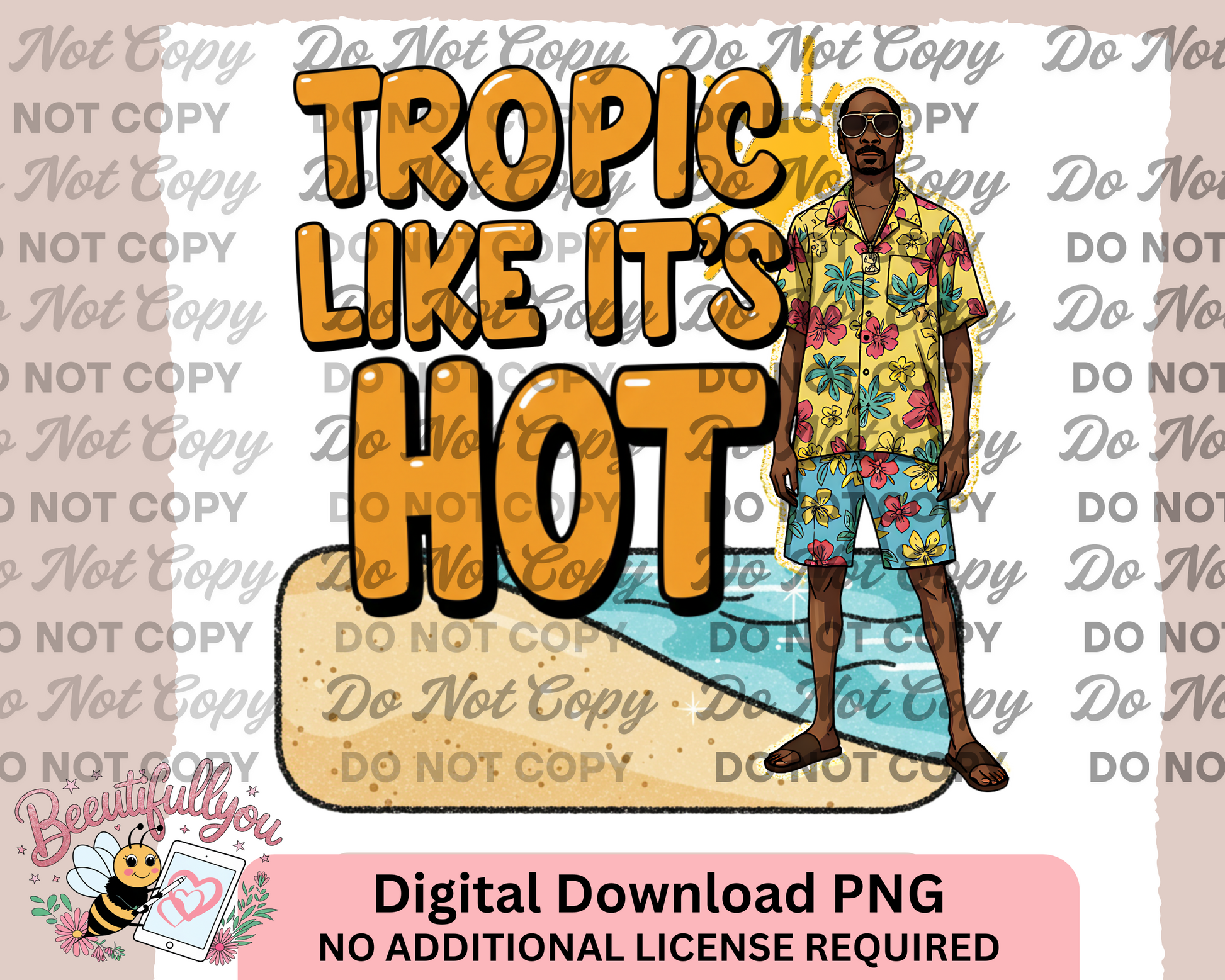 Tropic Like It’s Hot PNG – Funny Summer Digital Design with Tropical snoop in Beachwear | Commercial Use Sublimation File