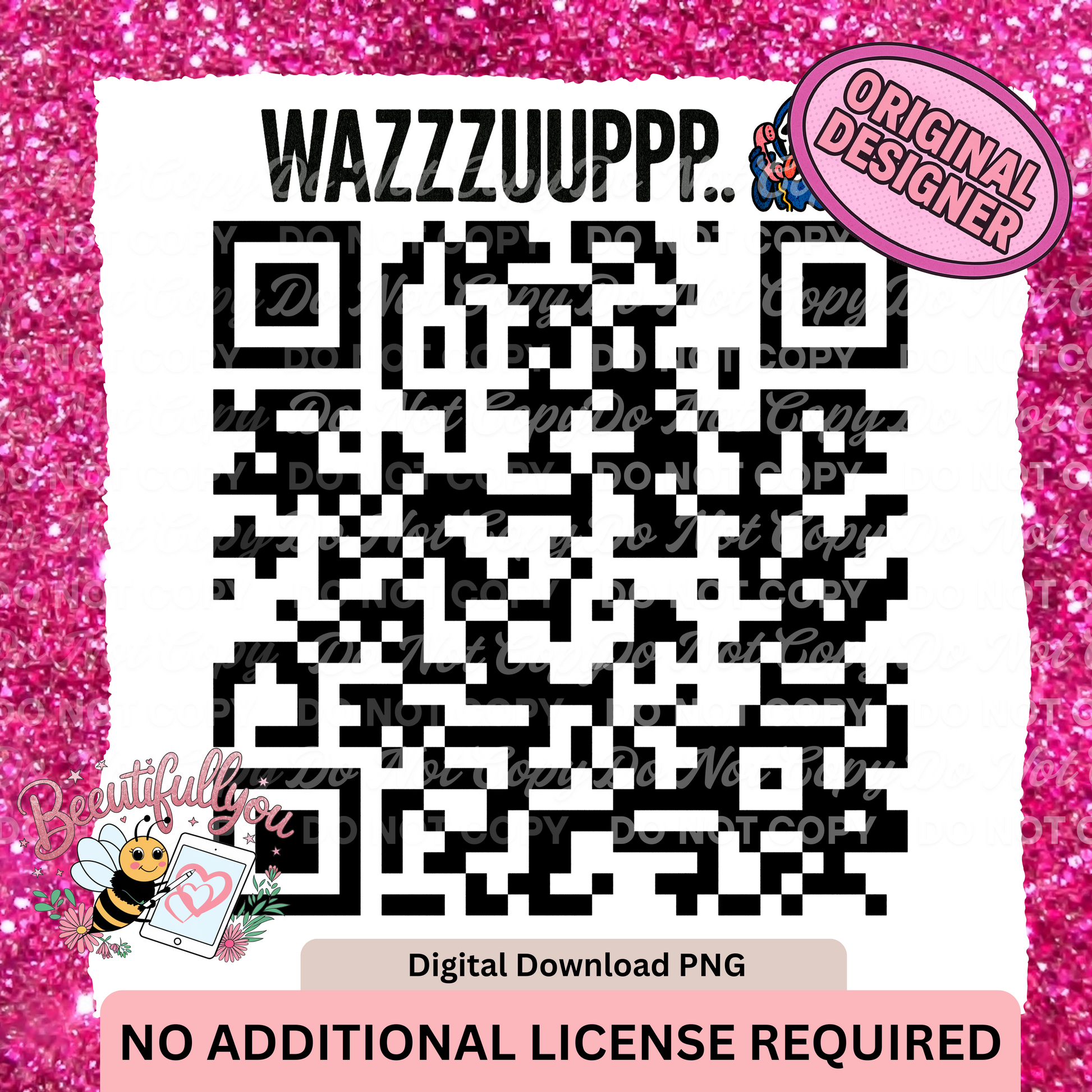 WAZZZUUPPP QR Code PNG | Funny Digital Download QR Design | Meme-Style PNG Clipart for Printing & DIY Crafts