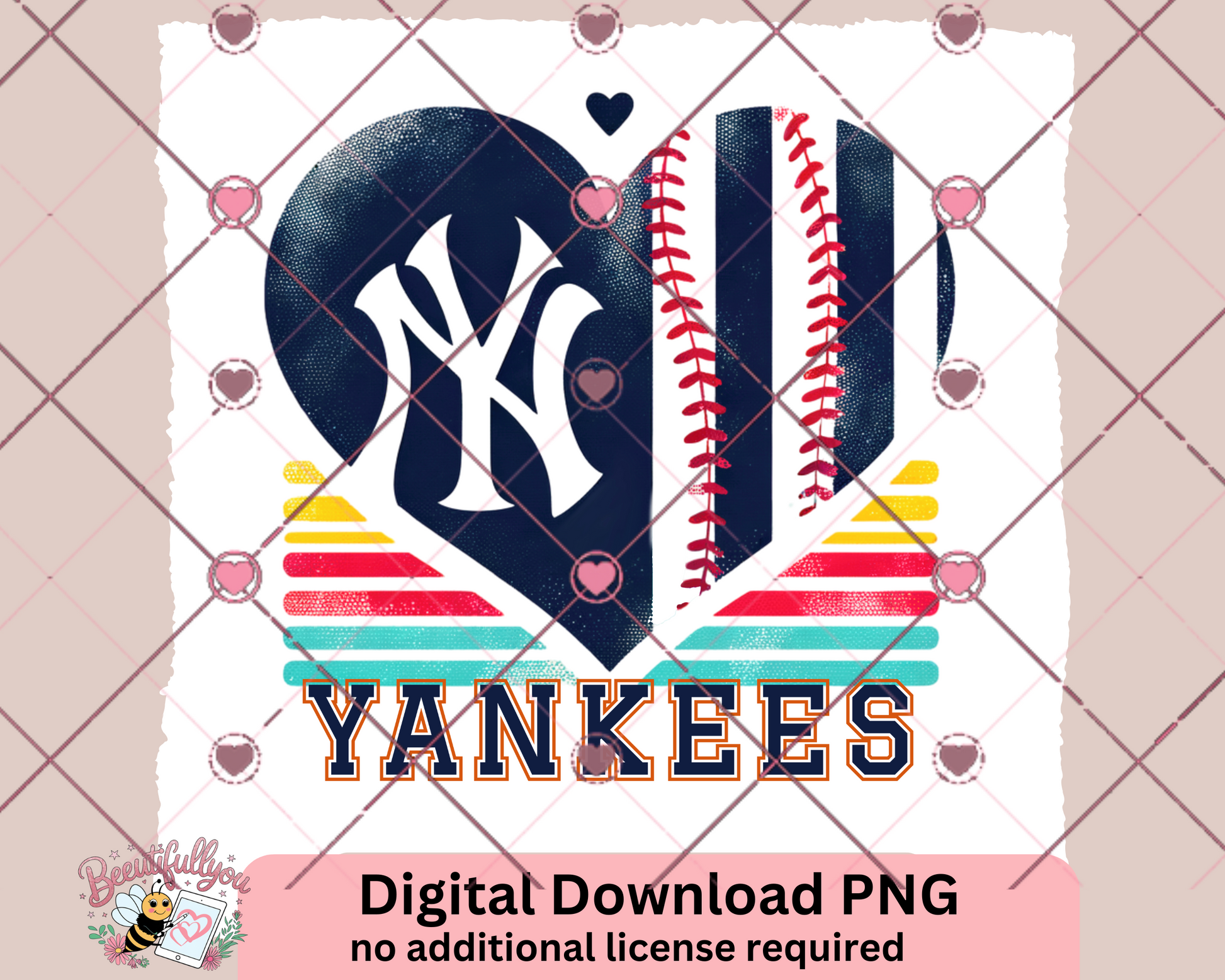 - Features a heart-shaped Yankees design with bold stripes and baseball stitching.