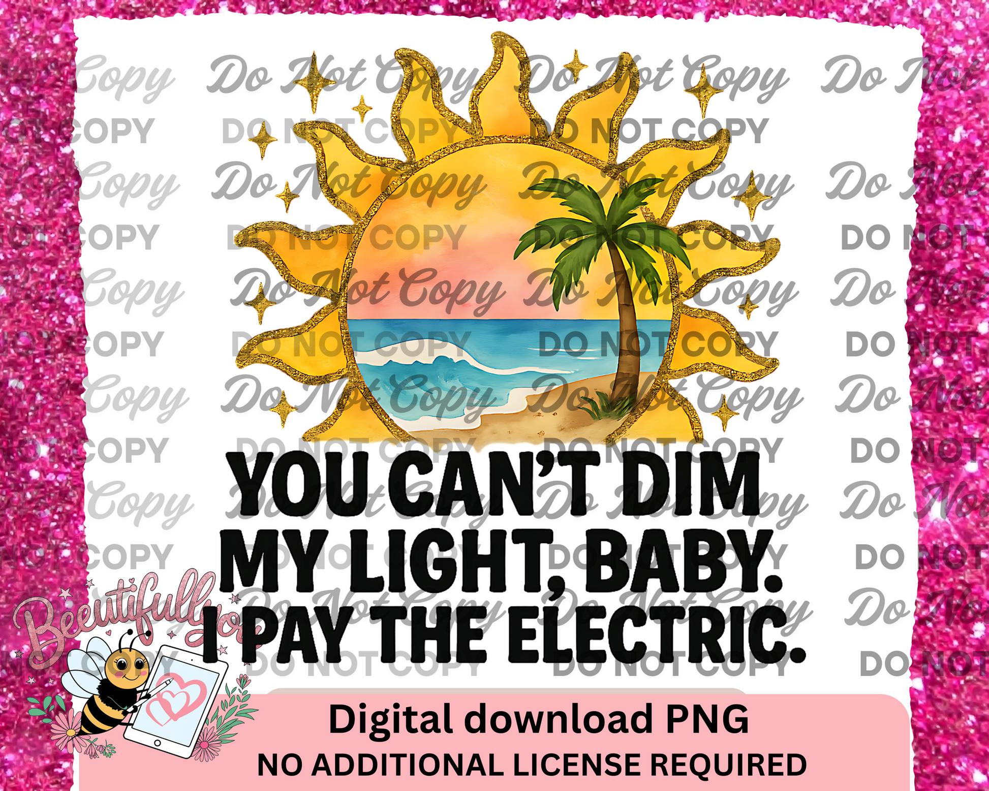 You Can’t Dim My Light, Beach Sun Quote Sublimation Design, Digital Download Clipart