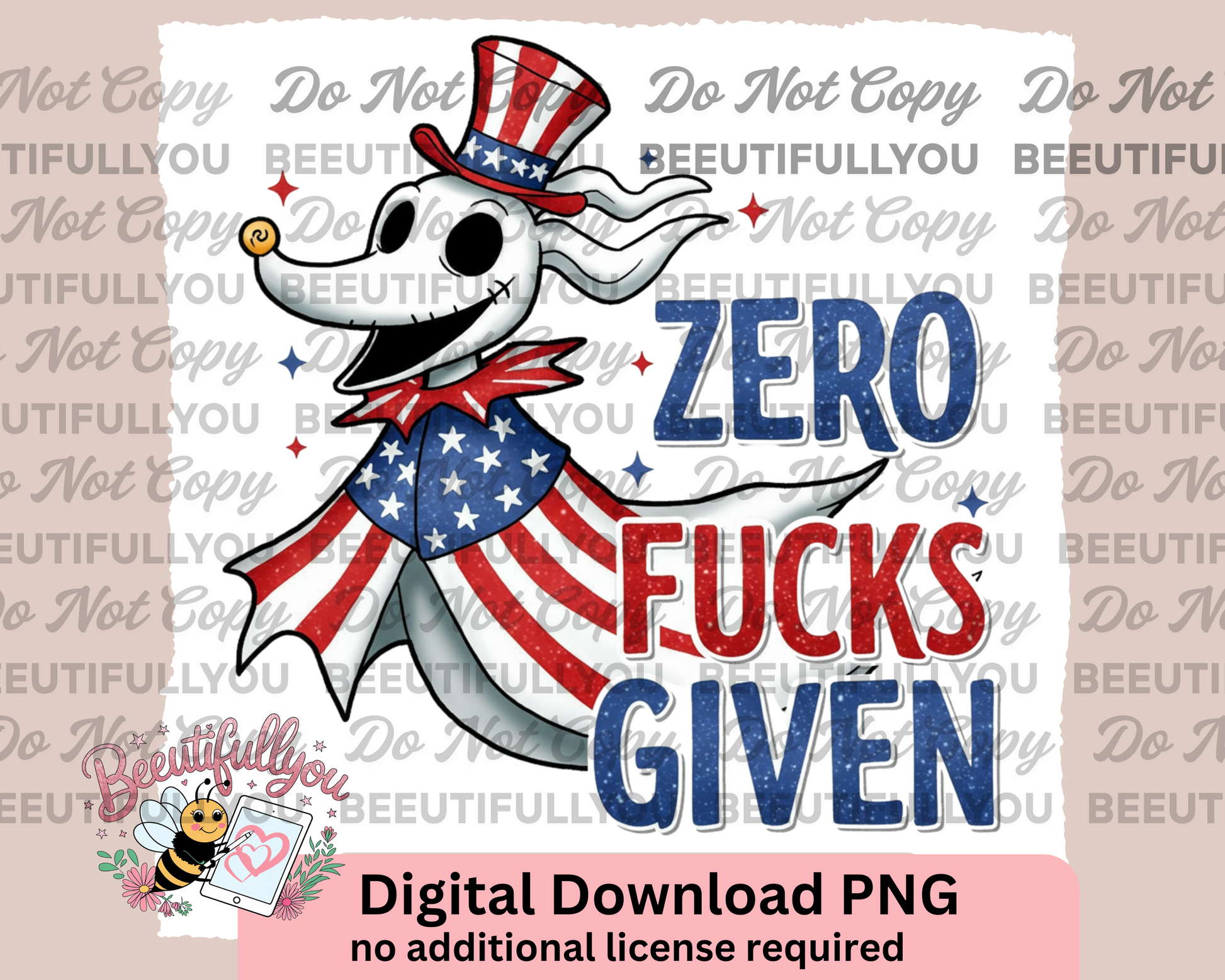 Zero F*cks Given PNG | Patriotic Ghost Digital Download | Funny 4th of July Design | No License Needed | DTF Friendly